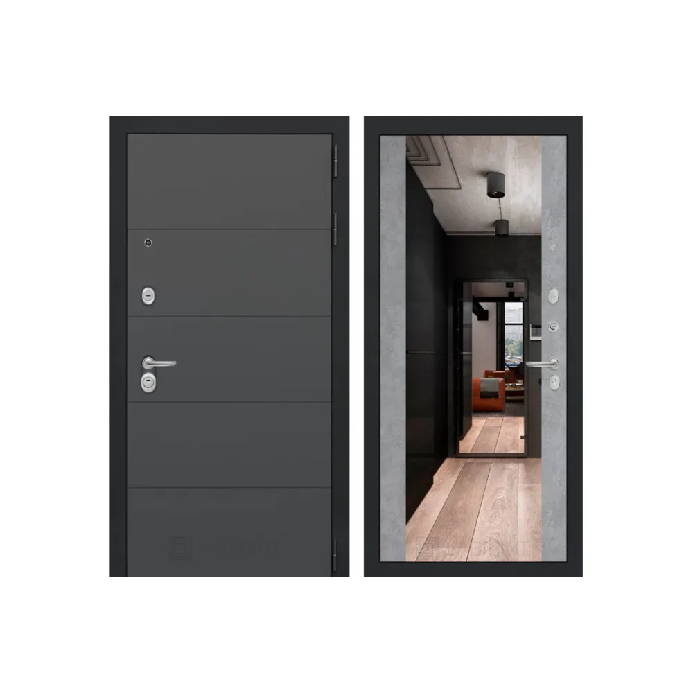 Металлическая дверь Labirint ART графит с зеркалом Макси Бетон Светлый
