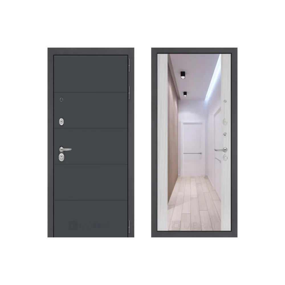 Металлическая дверь Labirint ART графит с зеркалом Макси Сандал Белый