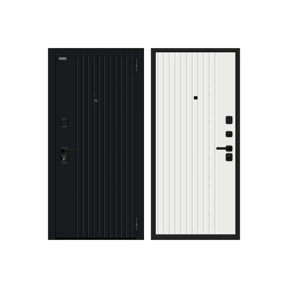 Сверхпрочная конструкция "6x2" - двойная толщина стали профиля полотна, двух контуров коробки, в зонах замка и петель. Дополнительную безопасность обеспечивают два противосъемных штыря