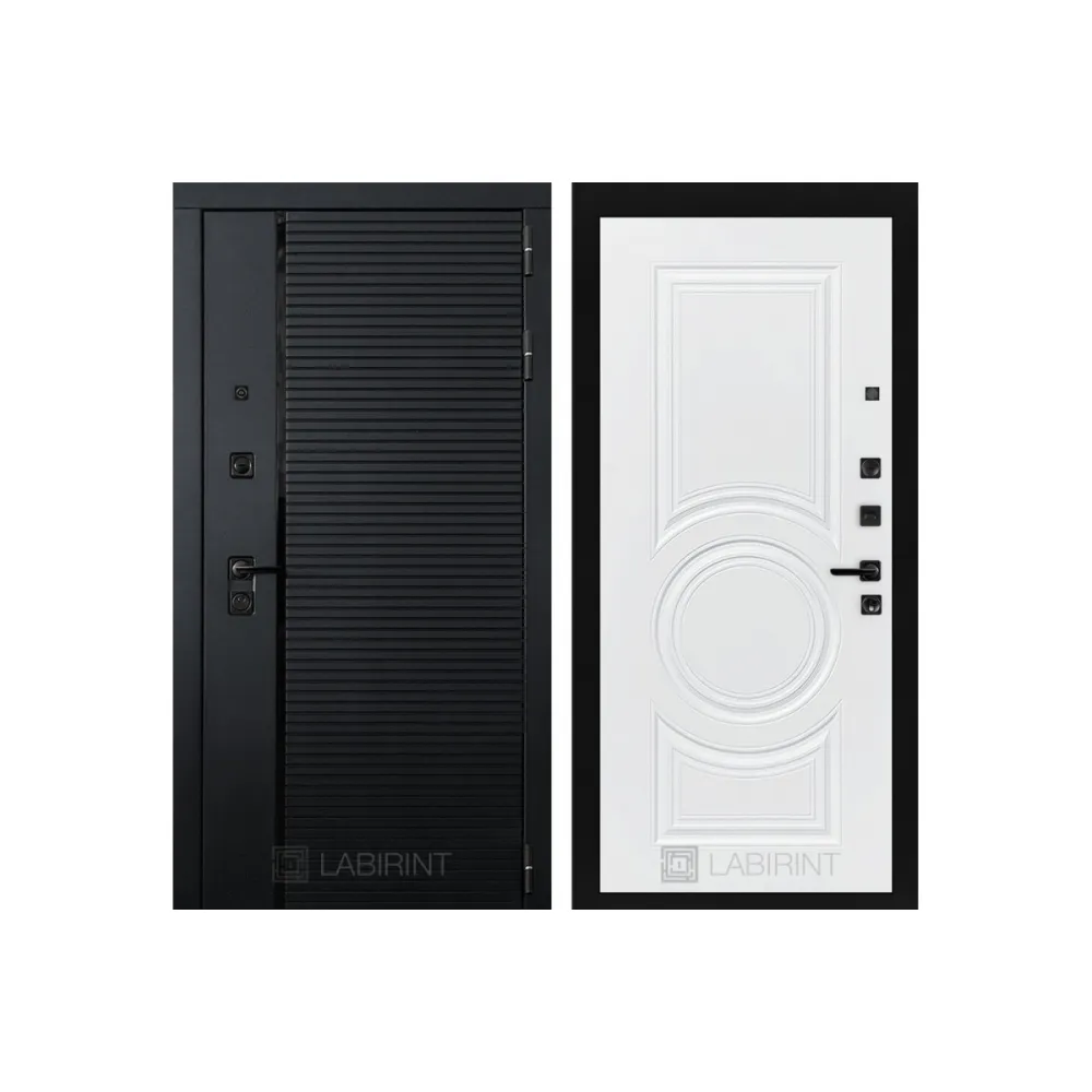 Фурнитура в черном цвете: Броненакладка врезная, накладка со шторкой, глазок , дверная ручка, ночная задвижка. Цилиндр ключ-вертушка Guardian, регулируемый эксцентрик.
