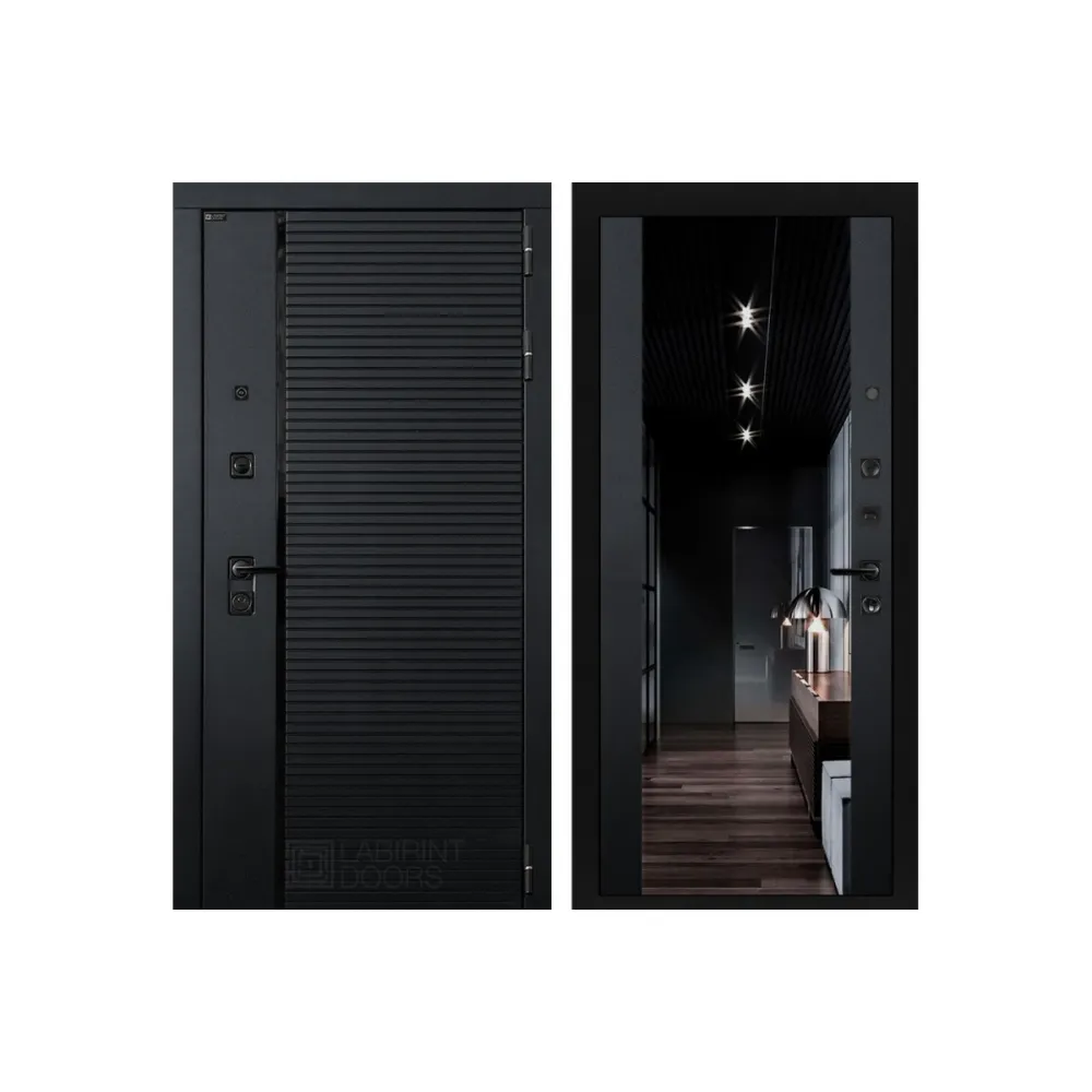 Входная дверь PIANO с зеркалом Максимум - Черный Кварц