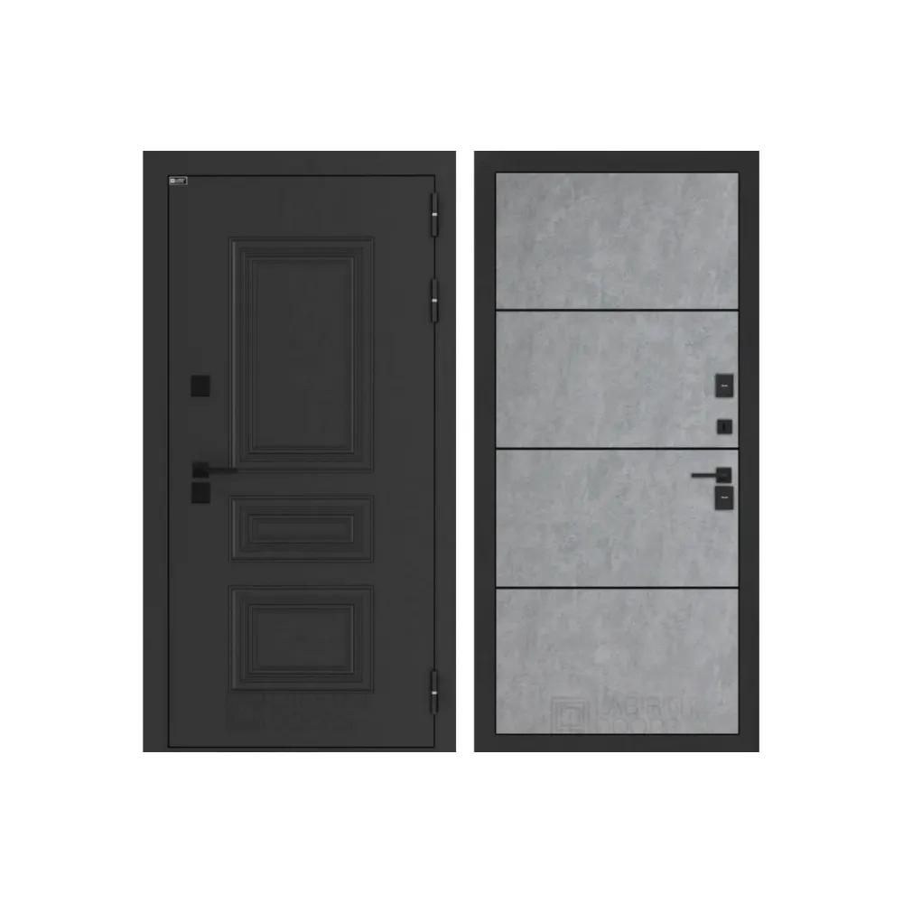Входная дверь Аляска Лайт 25 - Бетон светлый, черный молдинг
