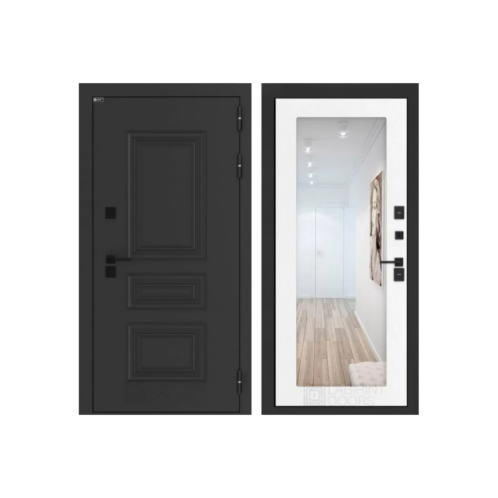 Входная дверь Аляска Лайт с Зеркалом 18 - Белое дерево