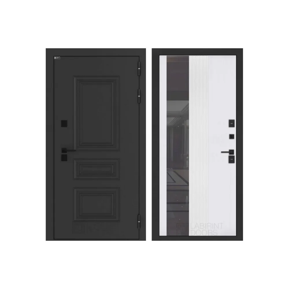 Входная дверь Аляска Лайт с Зеркалом 32 тонированным - Белый рельеф софт
