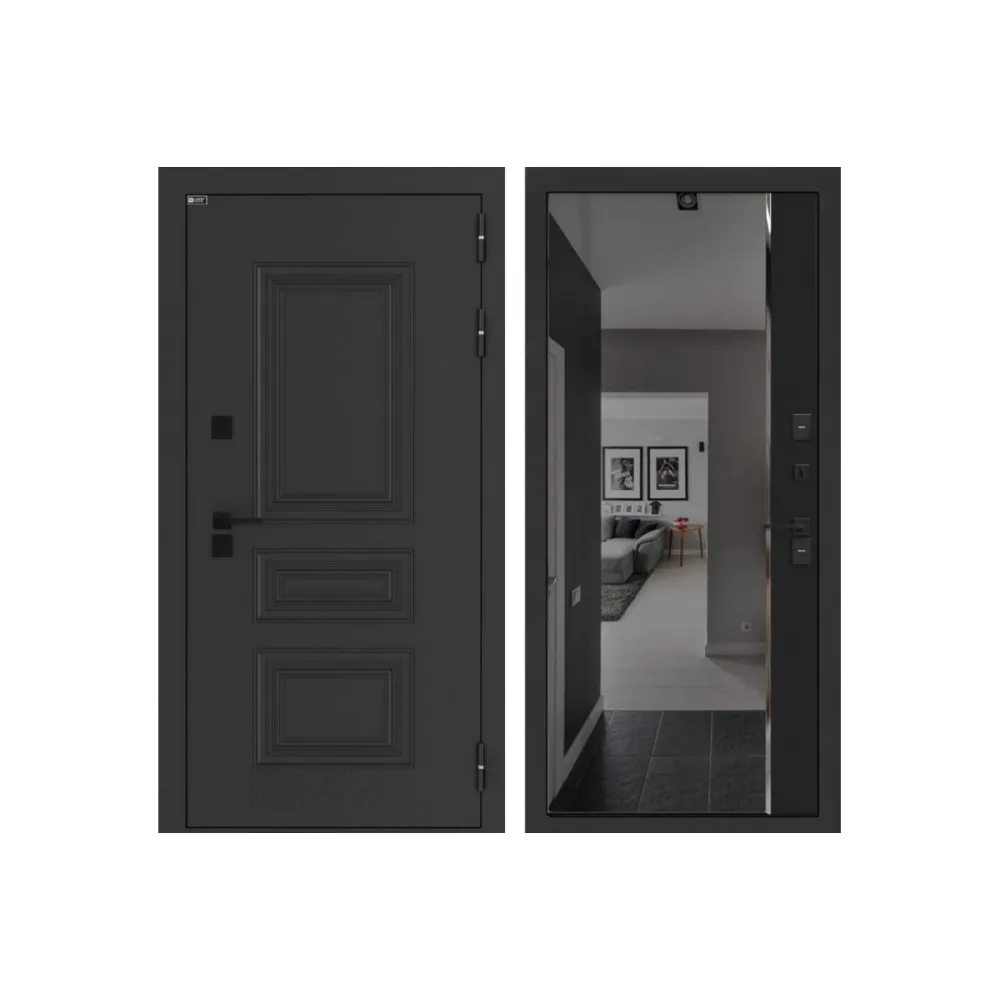 Входная дверь Аляска Лайт с зеркалом Панорама с тонировкой - Черный кварц