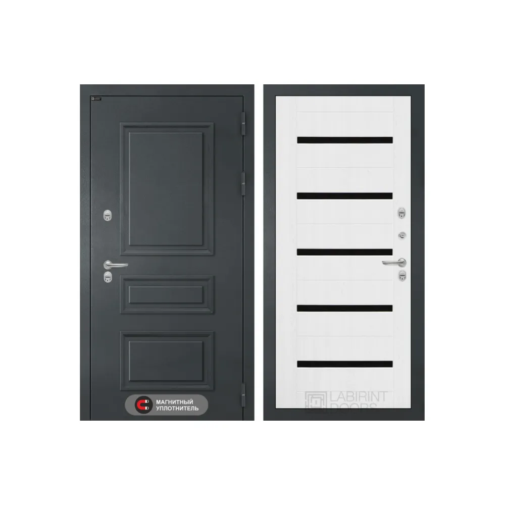 Входная дверь Атлантик 01 - Белое дерево, стекло черное