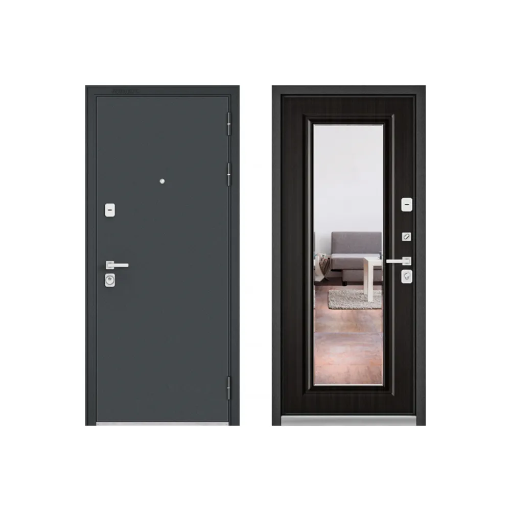 Металлическая дверь Бульдорс Премиум Черный Шелк с зеркалом Ларче Темный