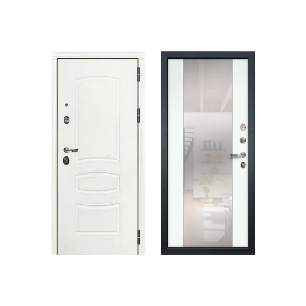 Металлическая дверь Лекс Легион Белая с зеркалом белый ясень ( панель №61)