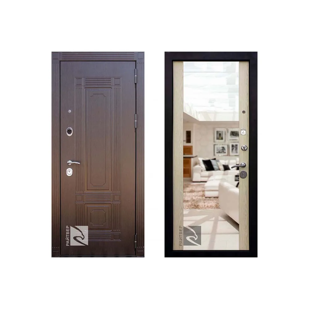 Металлическая дверь Райтвер Мадрид с зеркалом Беленый Дуб на заказ