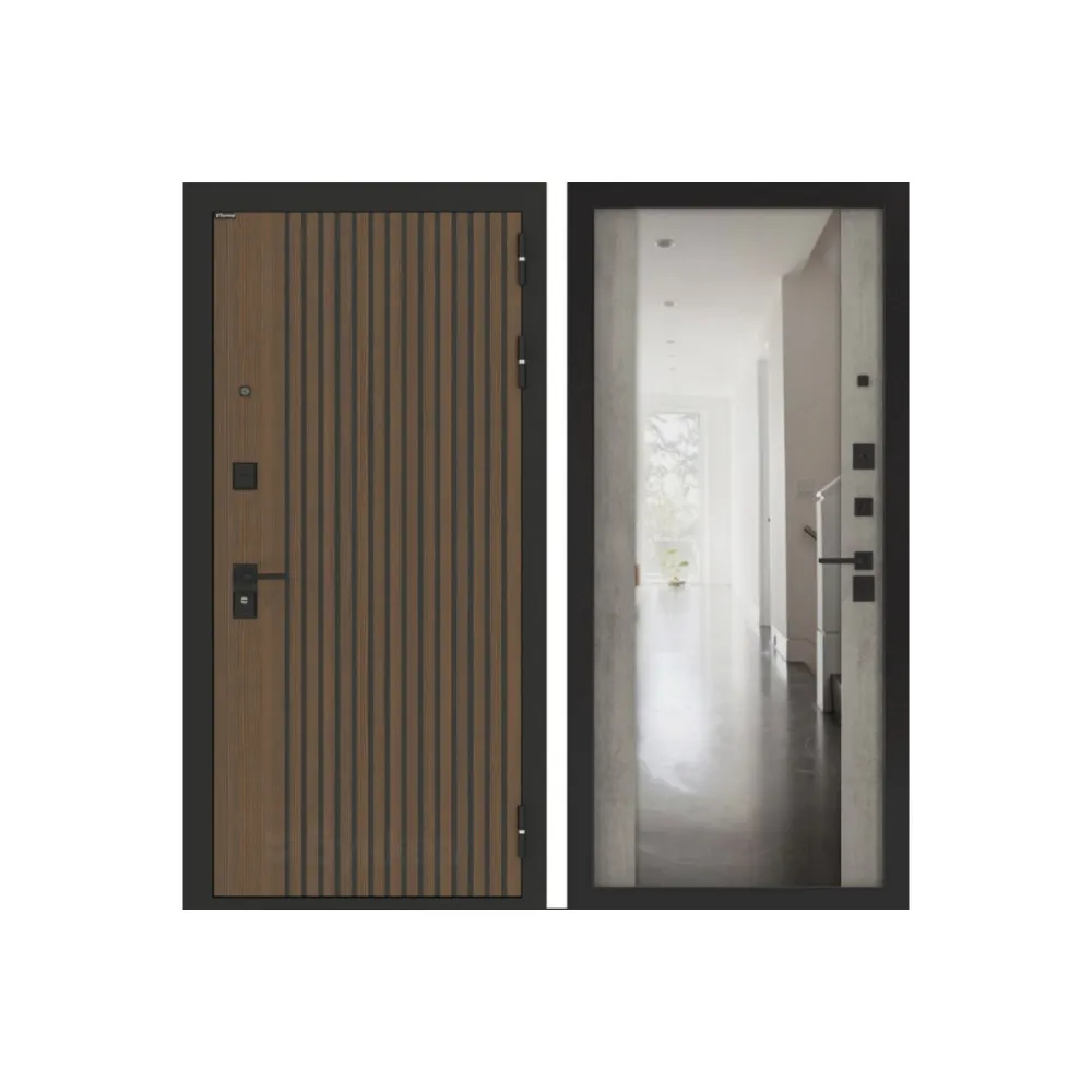Входная дверь BN-02 с зеркалом ФЛЗ-1 Бетон серый (светлый)