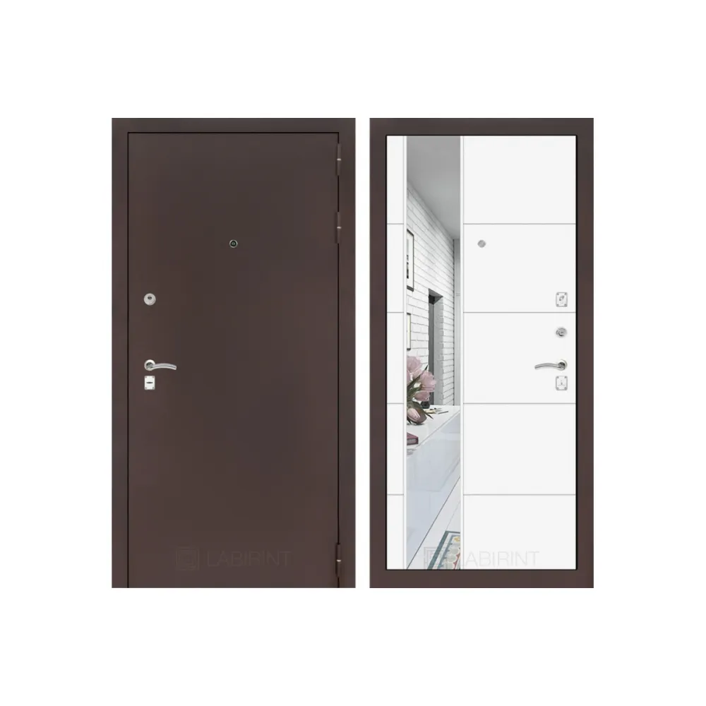 Входная дверь CLASSIC антик медный с Зеркалом 19 - Белый софт