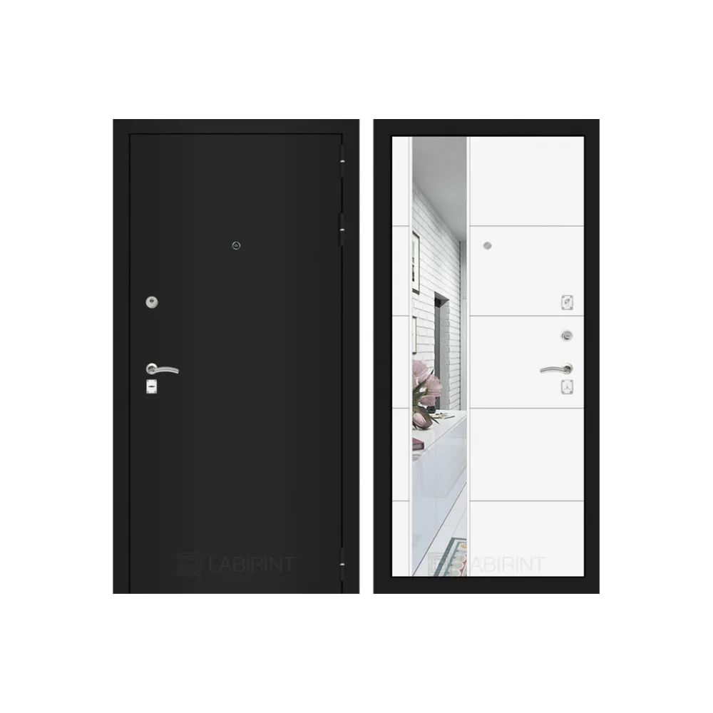 Входная дверь CLASSIC шагрень черная с Зеркалом 19 - Белый софт