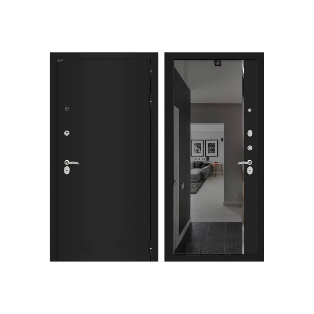 Входная дверь CLASSIC шагрень черная с зеркалом Панорама с тонировкой - Черный кварц