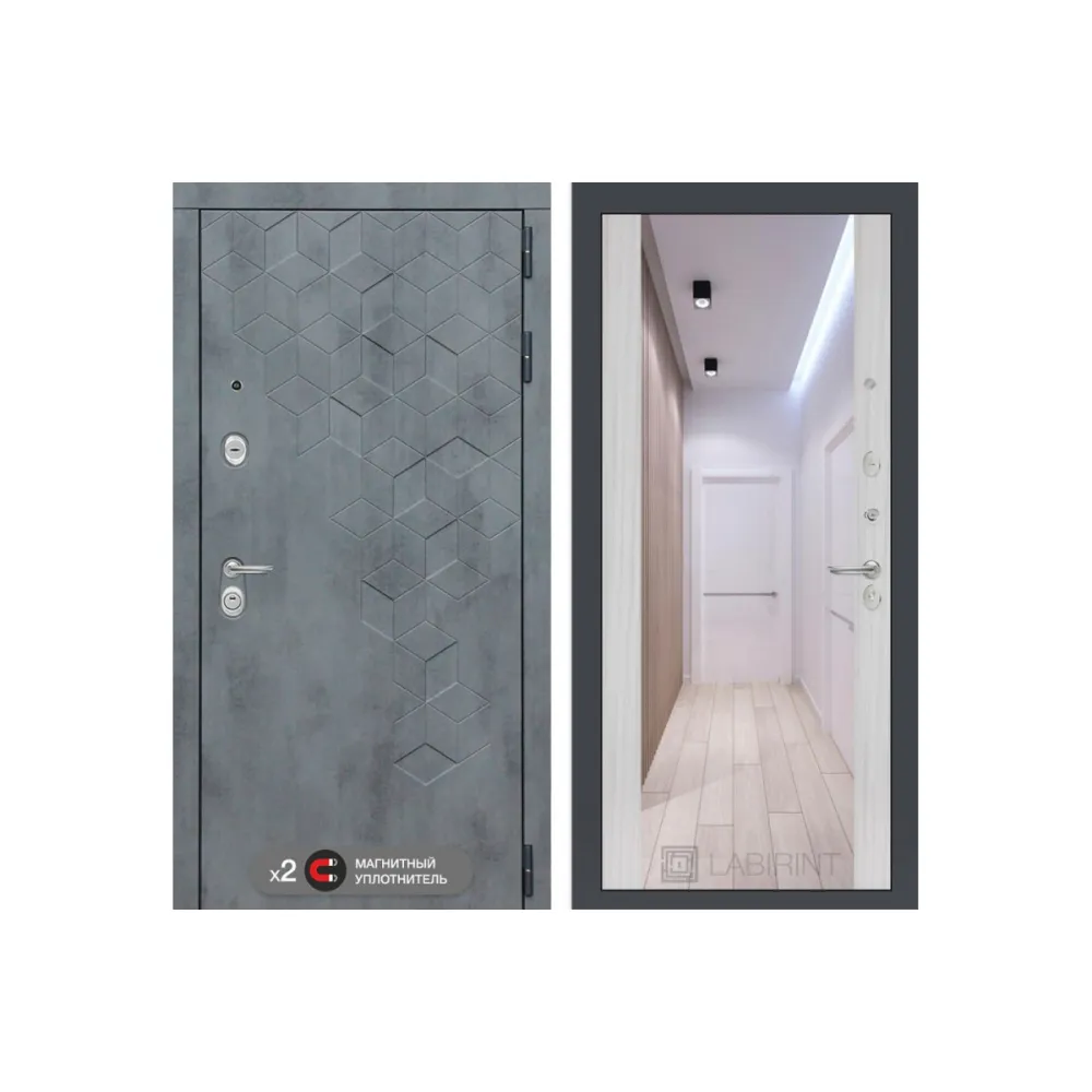 Входная дверь labirint Бетон с зеркалом Максимум (цвет Сандал белый)
