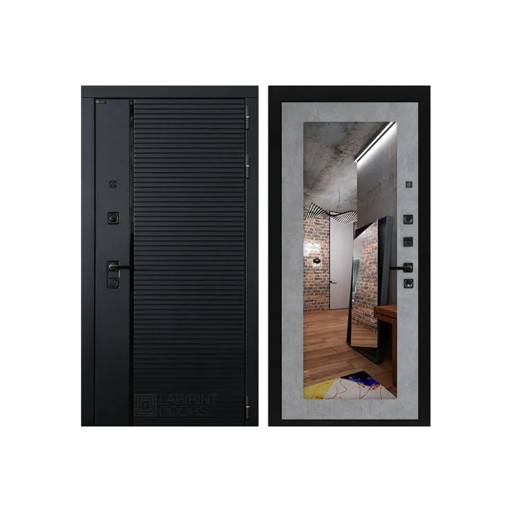 Входная дверь Лабиринт PIANO с зеркалом 18 - Бетон Светлый
