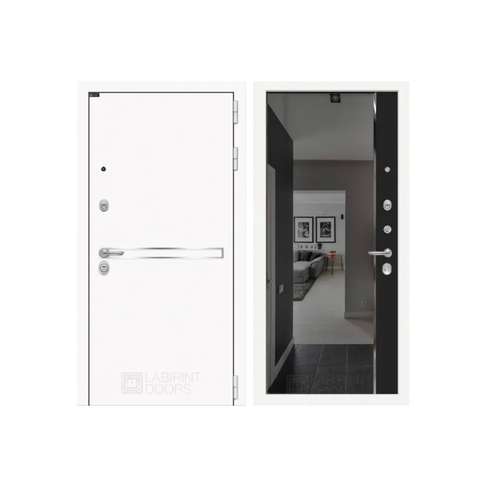 Входная дверь Лайн WHITE с зеркалом Панорама с тонировкой - Черный кварц