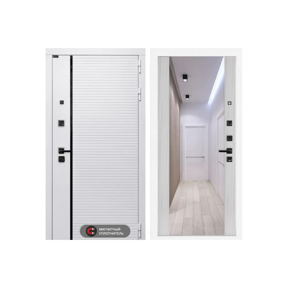 Входная дверь ROYAL с Зеркалом Максимум - Сандал белый