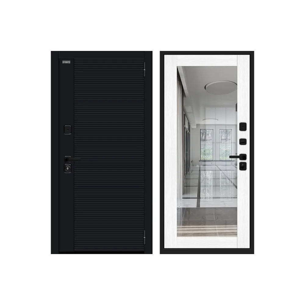Входная дверь с зеркалом Браво Джет-3 (RBE) Total Black/Snow Melinga