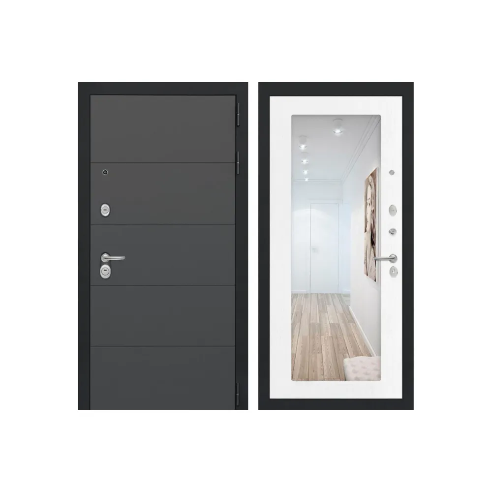 Входная дверь с зеркалом Йошкар-Ола 1А с Зеркалом Белое дерево трехконтурная