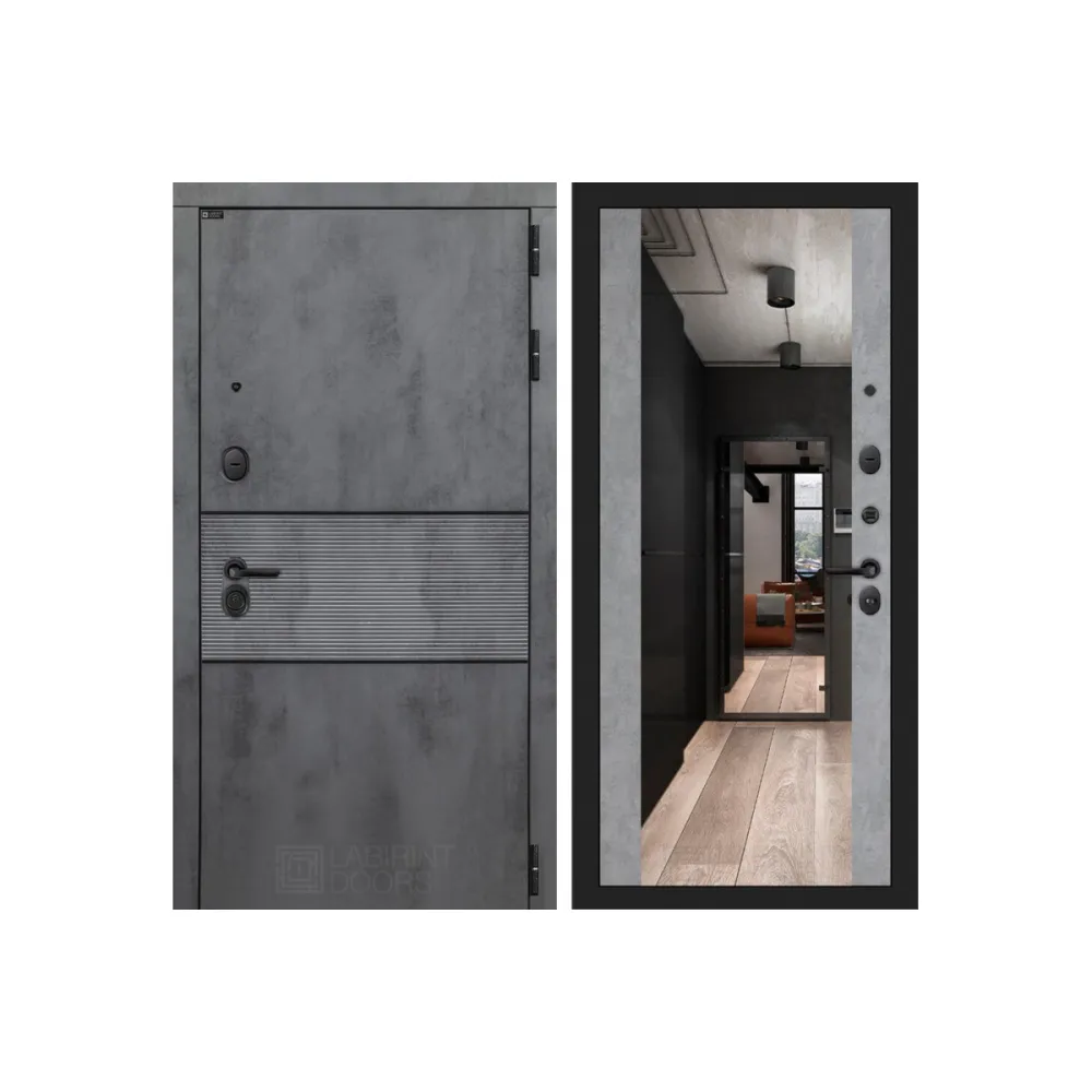 Входная металлическая дверь Лабиринт INFINITY с Зеркалом Максимум - Бетон светлый