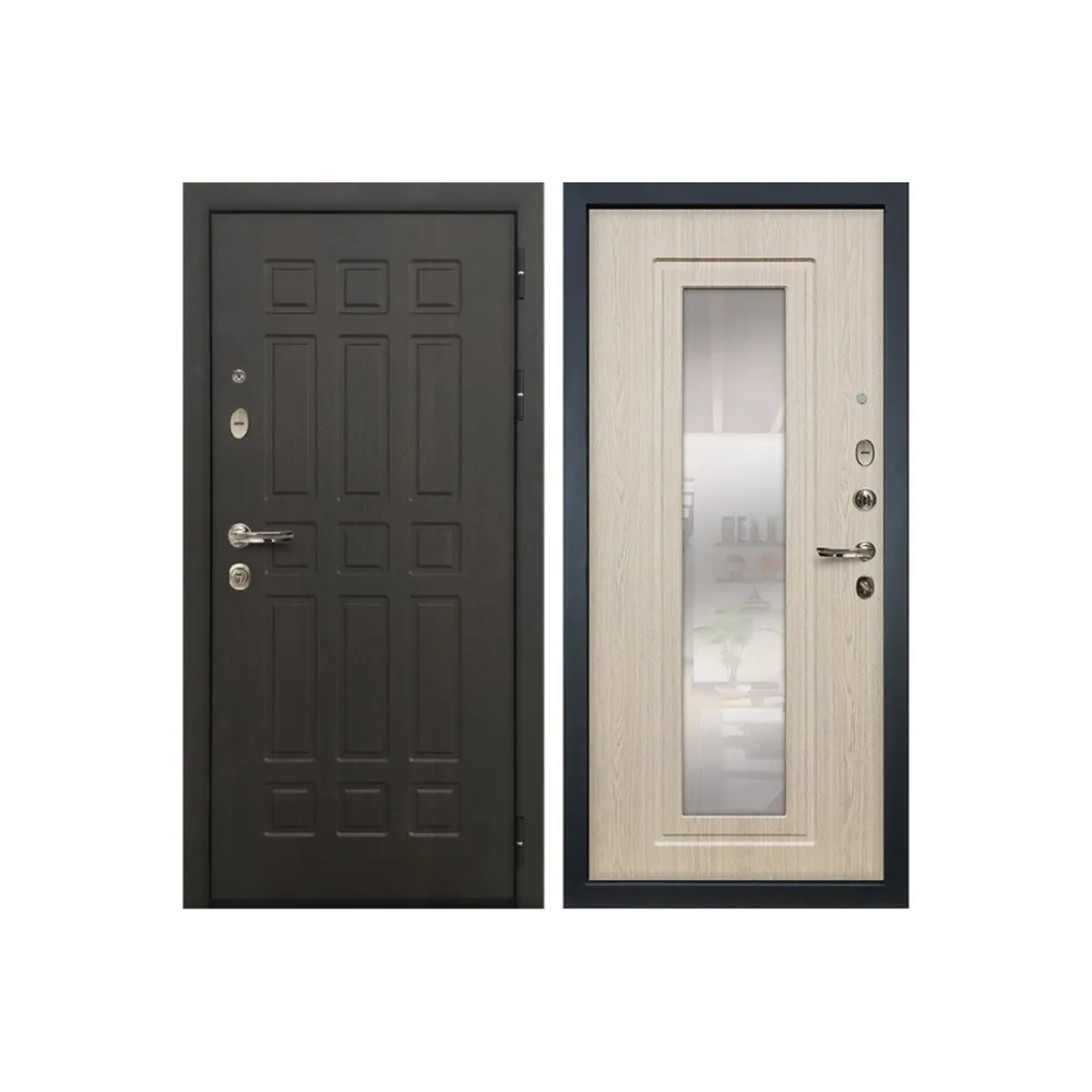 Входная металлическая дверь Лекс 8 Сенатор с зеркалом Дуб белёный (панель №23)