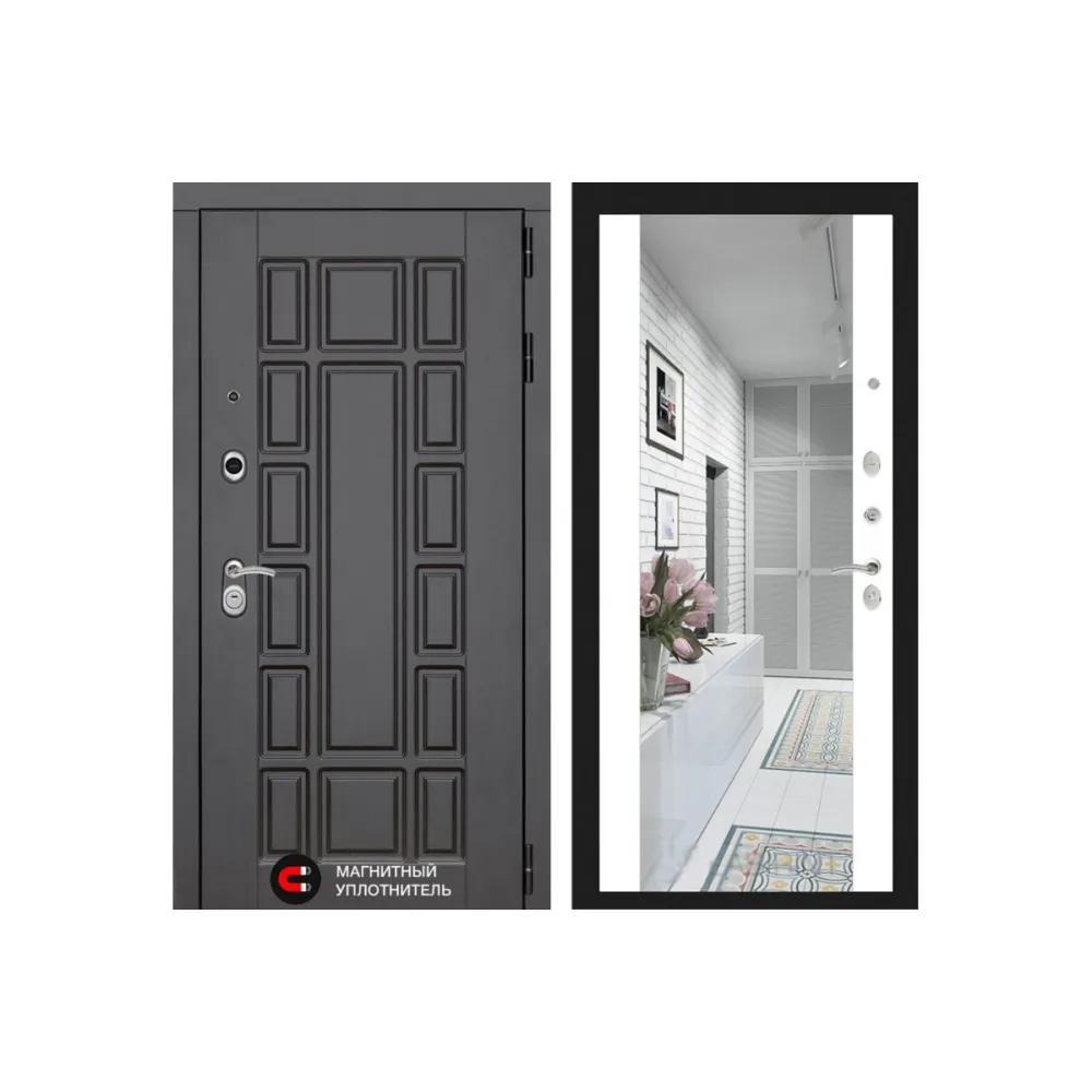 Входная металлическая дверь с зеркалом Йошкар-Ола 2N с Зеркалом Белый матовый