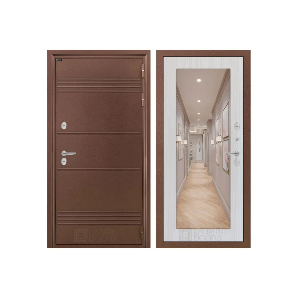 Входная дверь с терморазрывом Лабиринт Термо Лайт с Зеркалом 18 - Сандал белый
