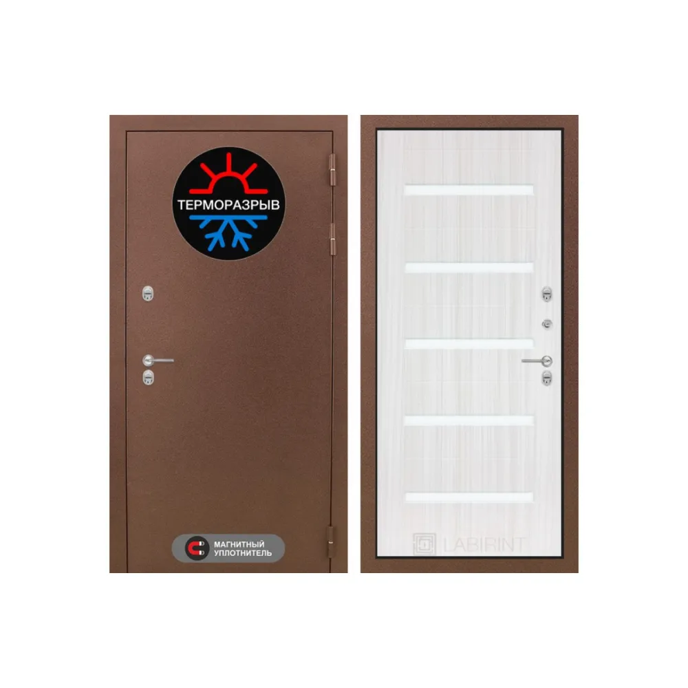 Входная дверь с терморазрывом Labirint Термо Магнит 01 Сандал белый, стекло белое