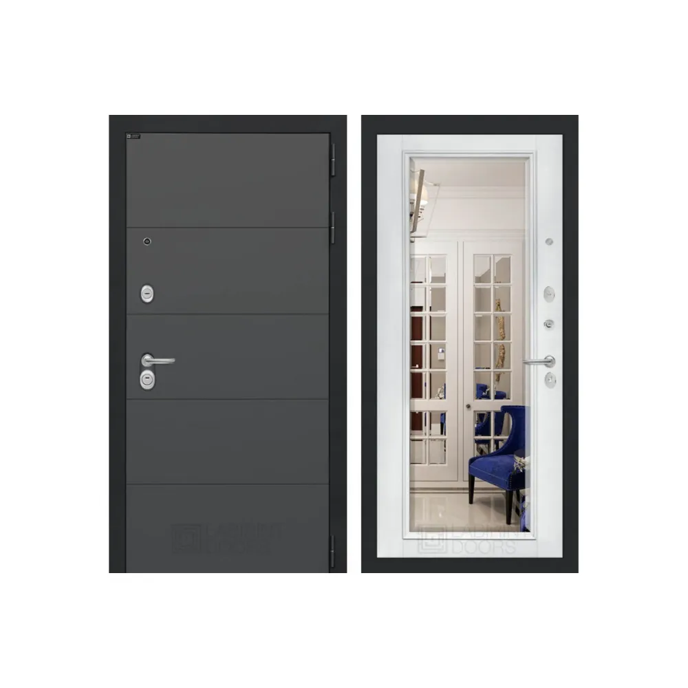 Металлическая дверь Labirint ART графит с зеркалом Фацет Белый Софт