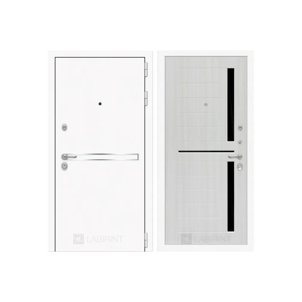 Дверь входная качественная Лайн WHITE 02 Сандал белый, стекло черное