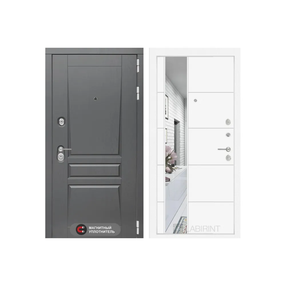 Двери Лабиринт входная дверь labirint Платинум с Зеркалом 19 (цвет Белый софт)
