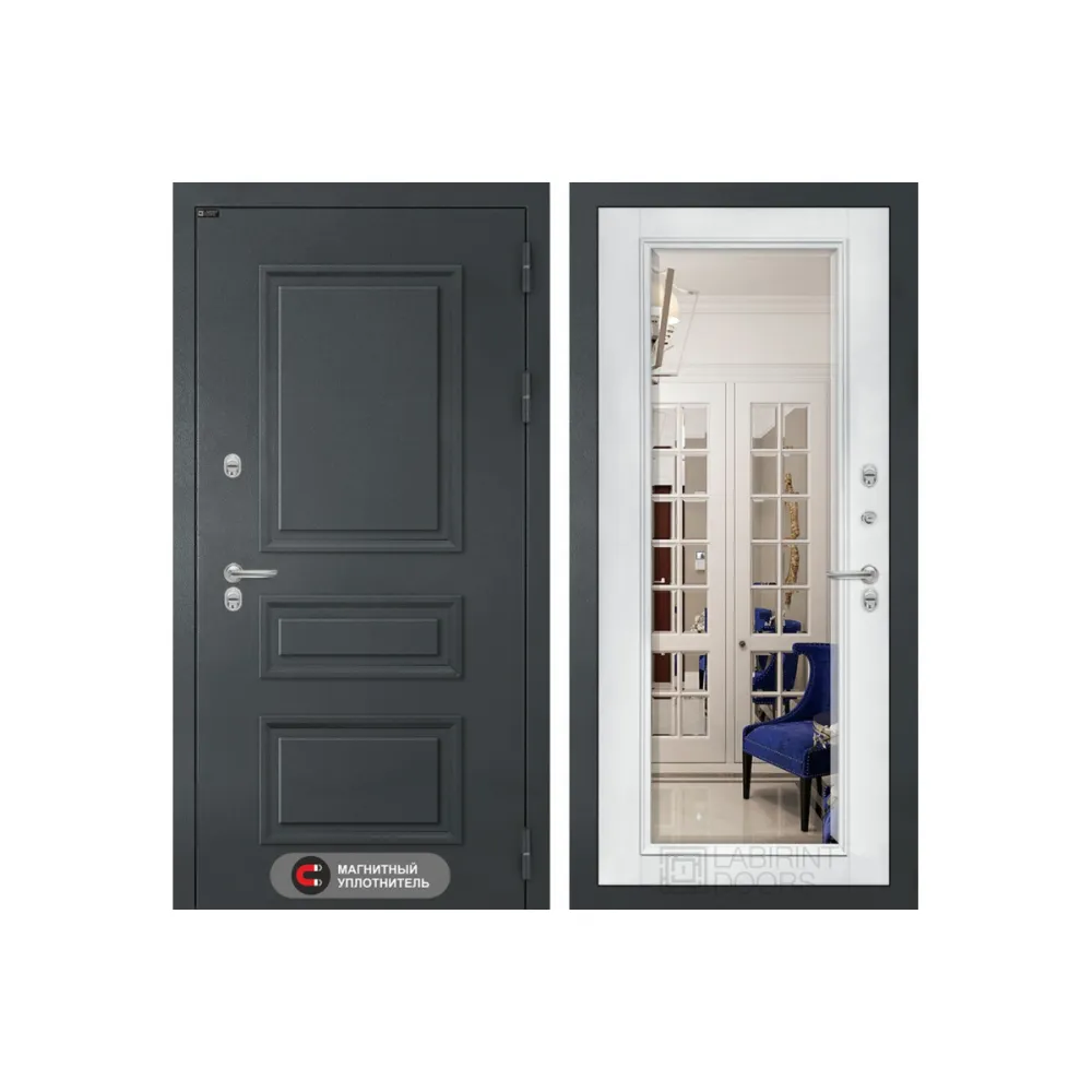 Входная дверь Атлантик с Зеркалом Фацет - Белый софт